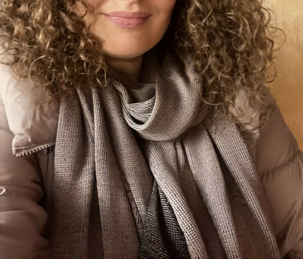Бактус-бандана треугольная, вязаная на машине платтингом, цвет какао/черный (лицо – 2какао меринос, изнанка – 1черный Нежность), 3 нити, размер 75см х 150см, 33меринос, 33акрил, 16хлопок, 18вискоза. 130гр.