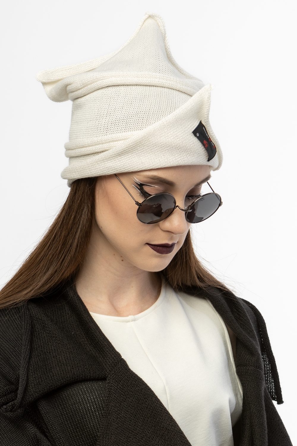 Шапка Джокера, шапка-спираль-оригами, шапка-распальцовка, шапка КиШ, цвет белый/белый (лицо – 2белая Нежность, изнанка –2белый меринос), 4 нити, обхват головы 56-58см, 50меринос, 23хлопок, 27вискоза. 95гр, k=15У нее нет понятия перед и зад – как наденешь, так и пойдешь – креативно выглядеть будешь в любом варианте! Можно носить с треугольным отворотом лейблом налицо, а также наизнанку швами-руликами внутрь. Стилизация панк-прически Горшка из КиШ (Король и Шут).
